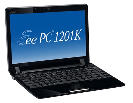 The newest Eee PC 1201K comes with a 12.1-inch LED-backlit 1366×768 LCD display. It has a 0.3 Megapixel camera, ergonomic chiclet keyboard, fitted stereo speaker, memory card reader & supports Bluetooth & WiFi connectivity. A 6-cell battery is included.